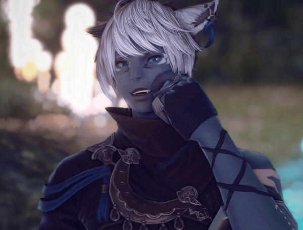 The small Miqo'te can often be seen visiting bars and flirting with danger, never one to value his own self-preservation in light of some good fun. Though a bit rough around the edges, he can be an extremely caring friend for life when one is able to get to know him.