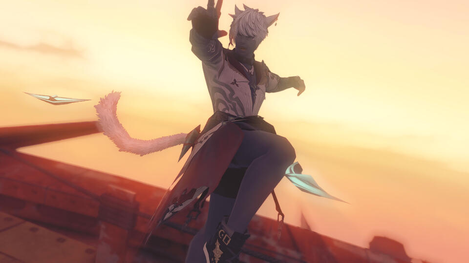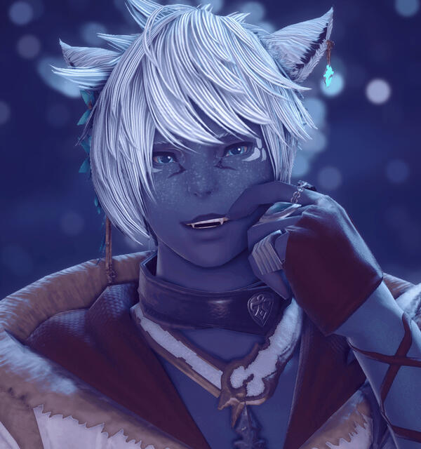 The small Miqo'te can often be seen visiting bars and flirting with danger, never one to value his own self-preservation in light of some good fun. Though a bit rough around the edges, he can be an extremely caring friend for life when one is able to get to know him.